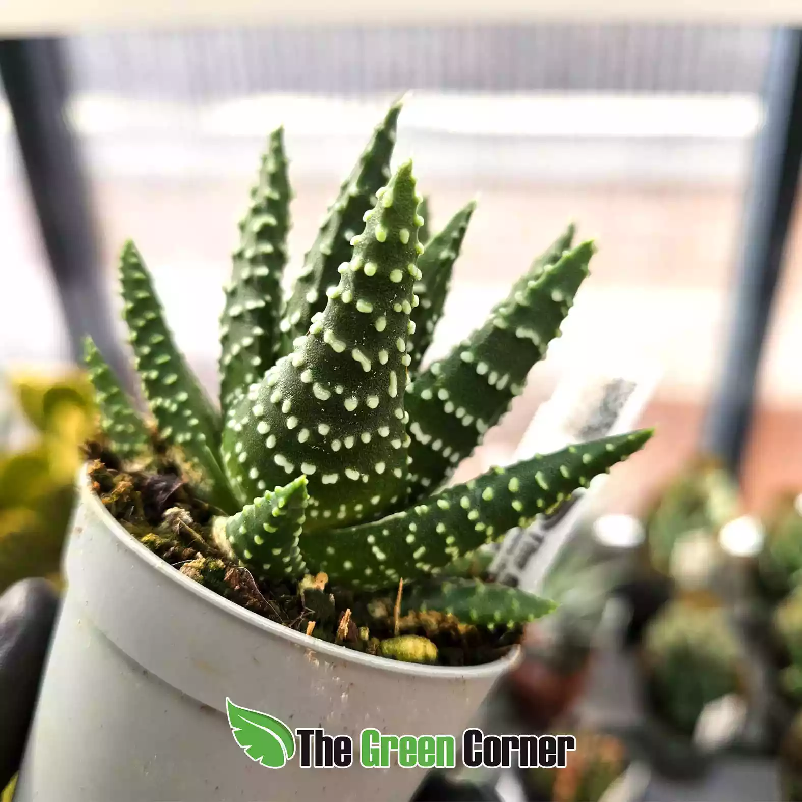 Haworthia papillosa es una suculenta compacta y muy resistente, apreciada por sus hojas carnosas de color verde oscuro cubiertas de papilas translúcidas que le dan un aspecto texturizado y brillante. Originaria del sur de África, esta especie crece en rosetas que se expanden lentamente y forman pequeñas colonias con el tiempo. Ideal para colecciones de suculentas, terrarios secos o cultivo en interior con buena iluminación, ya que tolera luz filtrada y temperaturas moderadas. Su mantenimiento es sencillo: necesita un sustrato muy drenante, riegos espaciados y evitar el exceso de humedad. Durante el verano puede florecer, produciendo delgados tallos con pequeñas flores blancas. Perfecta para quienes buscan una planta ornamental de bajo mantenimiento y aspecto exótico. En The Green Corner la ofrecemos en ejemplares seleccionados y cultivados en condiciones controladas, listas para prosperar tanto en interior como en exterior protegido.