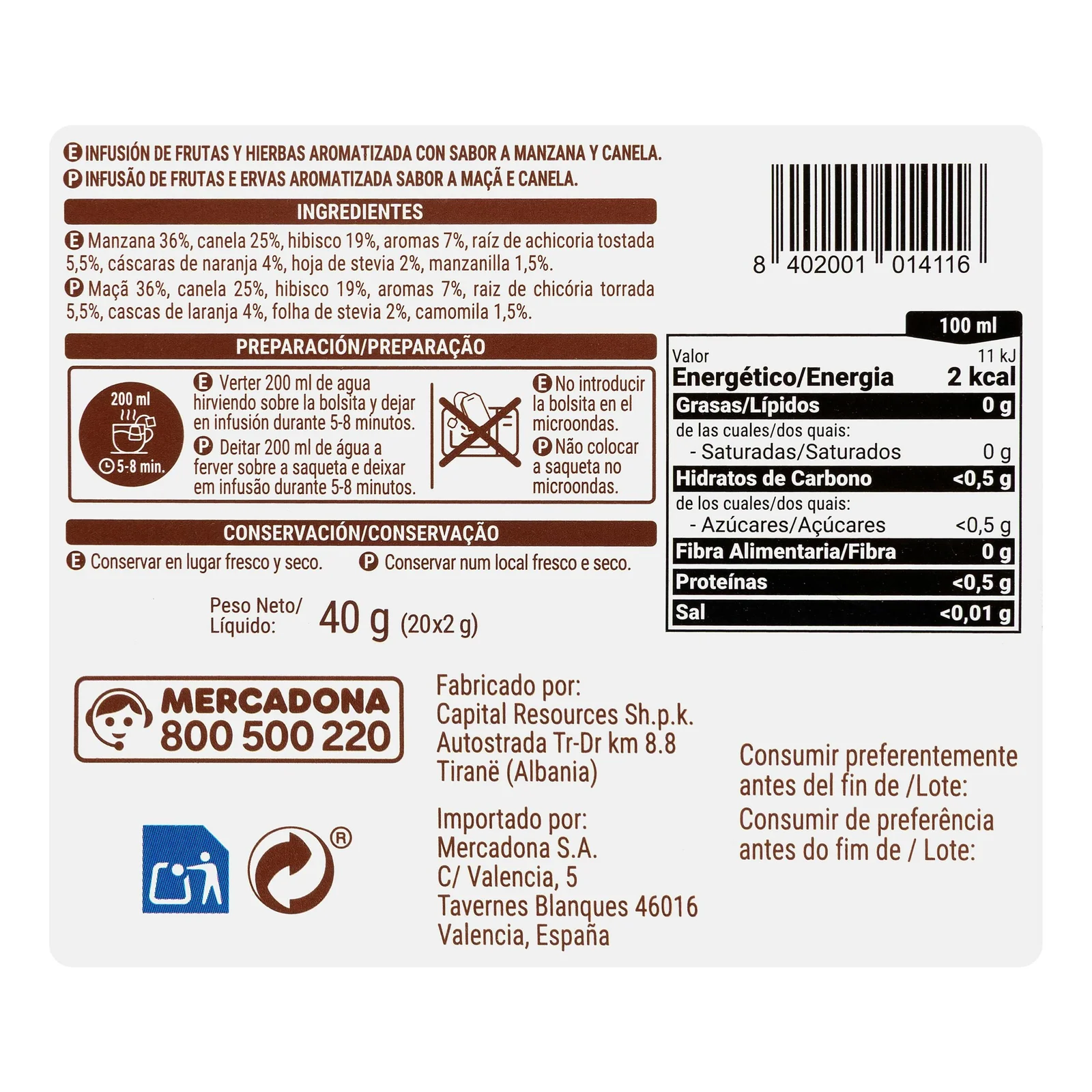 Infusión manzana y canela Hacendado con auténtico sabor de España.