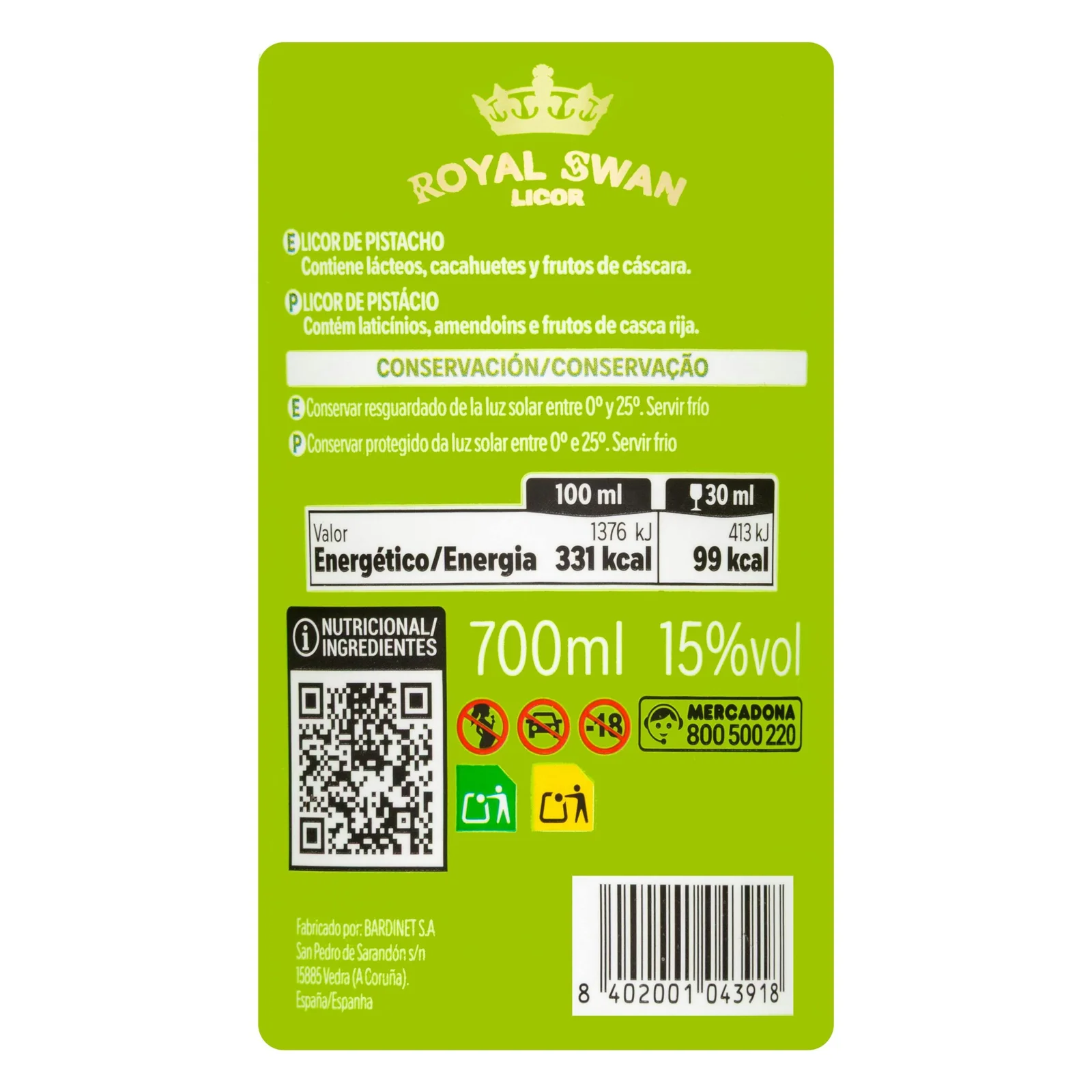 Licor crema de pistacho Royal Swan – producto español auténtico, ideal para quienes buscan el sabor de España en Europa.