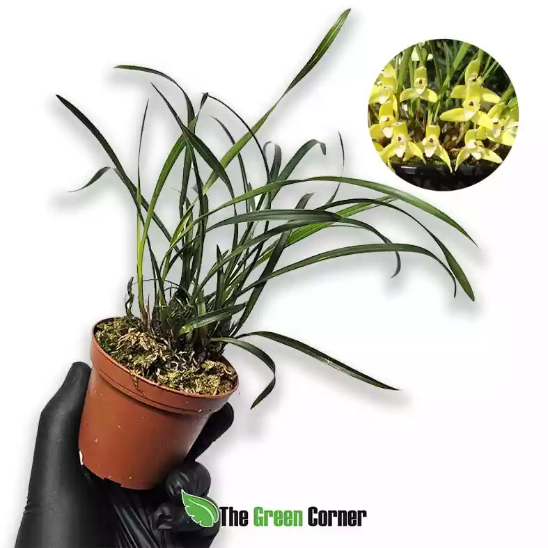 Maxillaria kautskyi es una orquídea miniatura originaria de Brasil que destaca por su floración vibrante y su tamaño compacto. Produce flores llamativas de color amarillo intenso, con una textura cerosa y un contraste marcado entre los segmentos florales y el labelo. Su crecimiento es simpodial, con pseudobulbos pequeños y hojas estrechas, lo que la hace ideal para cultivo en espacios reducidos o colecciones especializadas. Esta especie prefiere condiciones intermedias a cálidas, buena humedad ambiental y luz brillante indirecta. Puede cultivarse en maceta con sustrato drenante o montada en corcho o helecho, siempre con ventilación adecuada. Requiere riegos frecuentes durante la temporada de crecimiento, aunque con buen drenaje para evitar pudriciones. Su floración puede producirse en distintas épocas del año si las condiciones son estables, y las flores suelen durar varios días. Maxillaria kautskyi es perfecta para orquideófilos que buscan especies raras y vistosas en formato miniatura. En The Green Corner ofrecemos ejemplares seleccionados por su salud y potencial florífero, ideales para quienes valoran la belleza compacta y exótica.