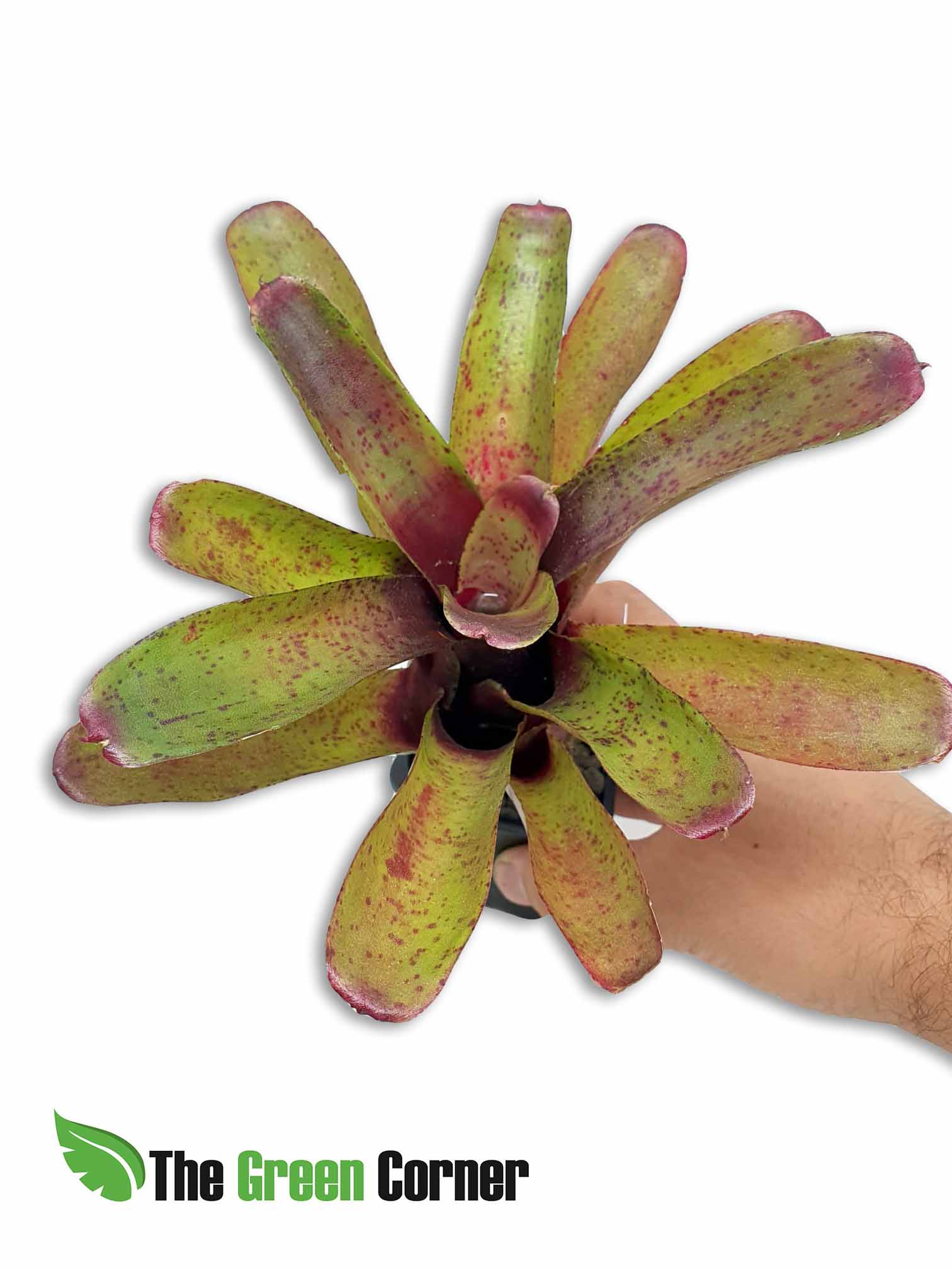 Neoregelia Fireball spottedl: Este género probablemente tiene las especies más coloradas de la entera familia de las Bromelias. Las Neoregelias producen muchas hojas de intensos colores y forman una roseta redonda y decorativa de tamaño mediano. Durante la floración los colores en el centro se ponen aun más intensos.