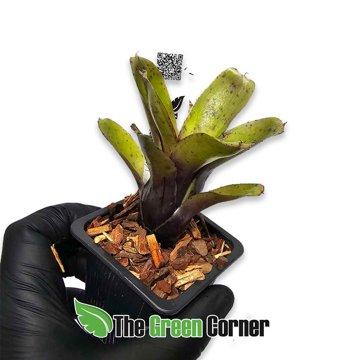 Neoregelia Narzis es una llamativa variedad de bromelia que se distingue por su hermoso follaje de tonos verdes claros. oscuros y rojizos.