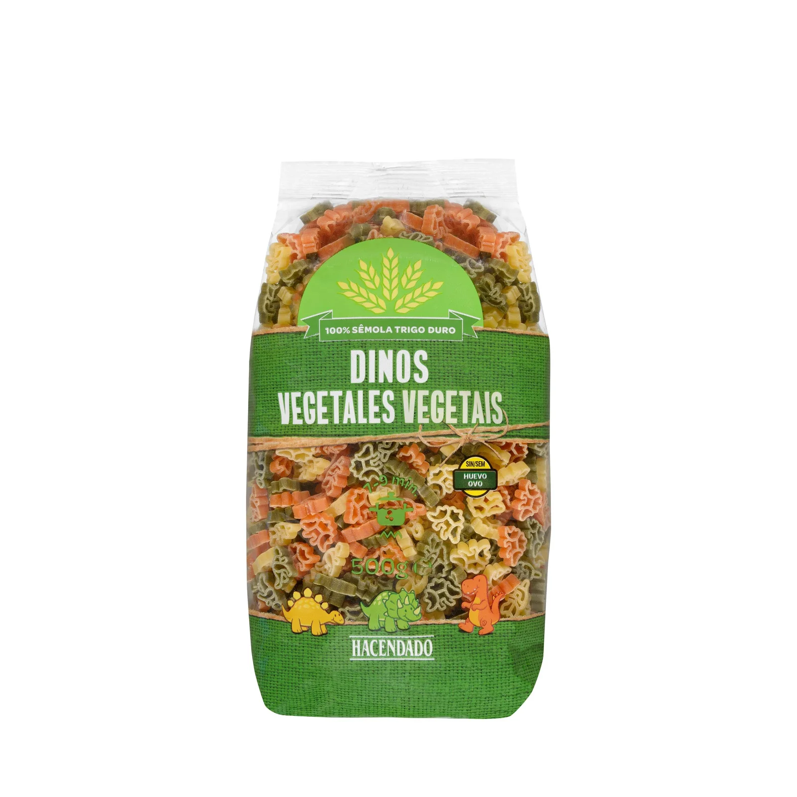Pasta infantil Dinos vegetales Hacendado típico del mercado español.