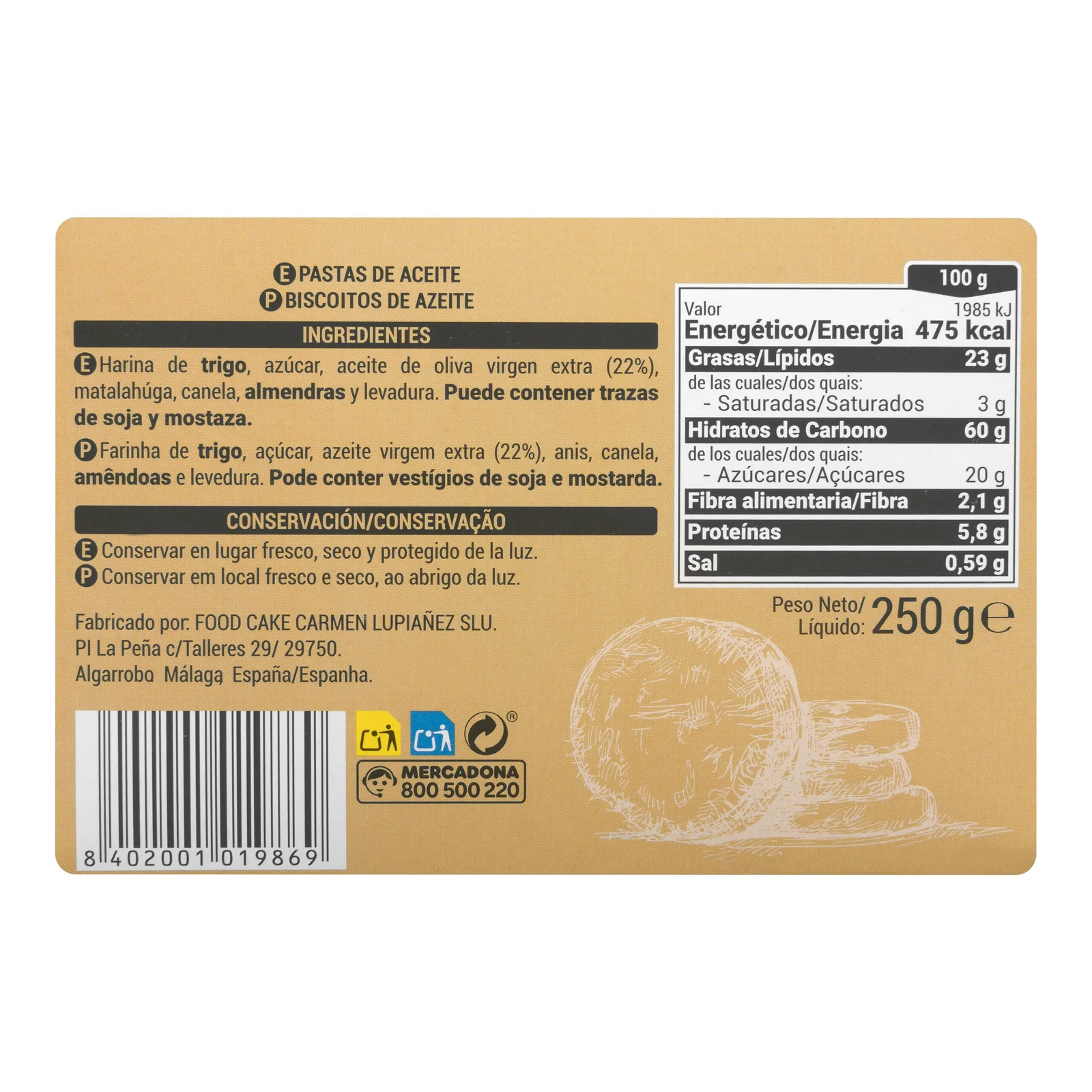 Pastas de aceite Hacendado, un clásico del mercado español. Forma parte de la variedad de galletas surtidas. Ideal para españoles fuera de Europa que buscan sabores de casa y para europeos que quieren disfrutar de productos auténticos de España.