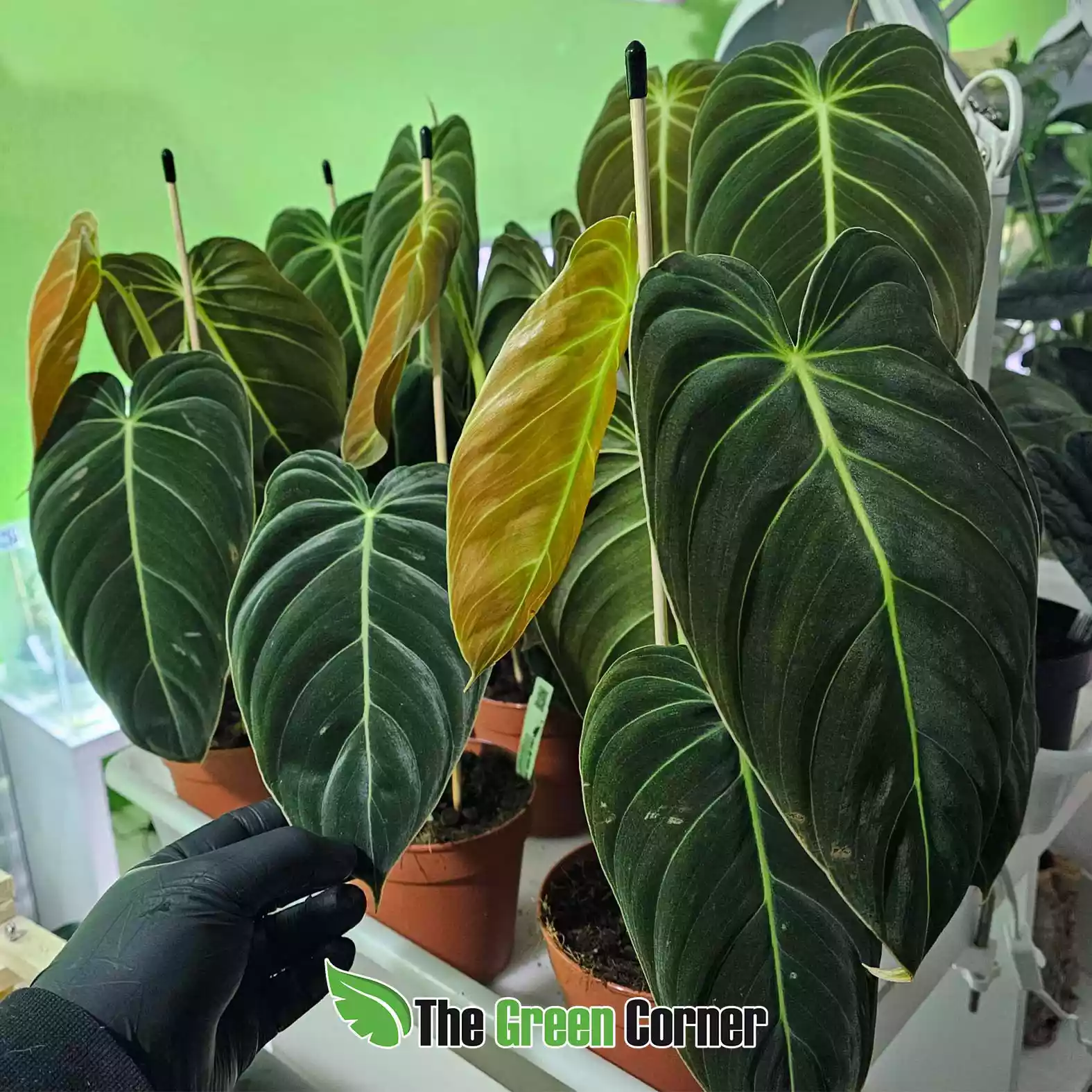 El nombre “melanocrysum” proviene del griego y significa “oro negro”, en referencia al tono oscuro y el brillo de sus hojas. Es una planta que se desarrolla mejor cuando imita su hábitat natural, trepando por troncos o soportes verticales, donde puede alcanzar un tamaño impresionante. Perfecta para coleccionistas que buscan piezas exclusivas y elegantes.