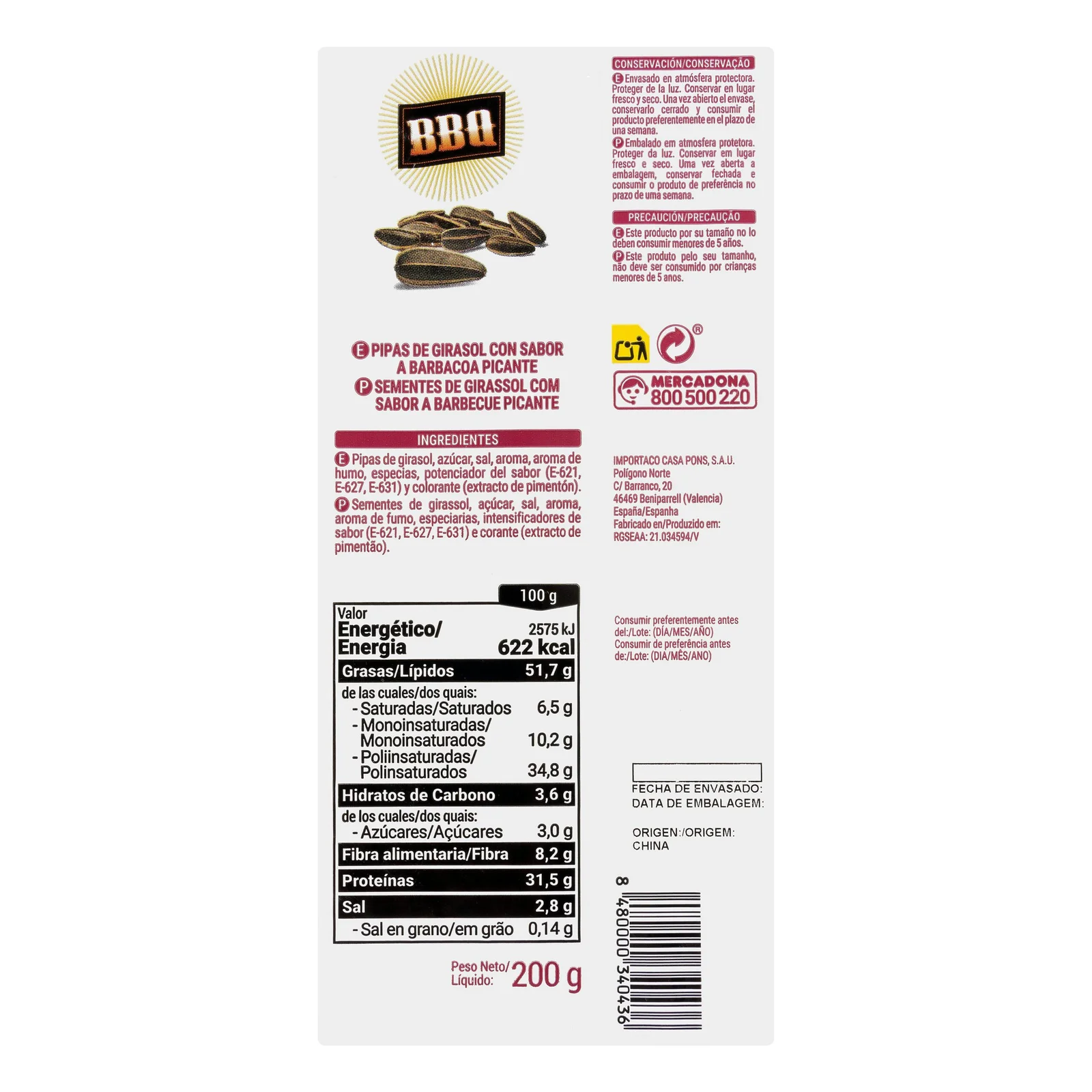 Pipas girasol barbacoa, producto típico del mercado español.