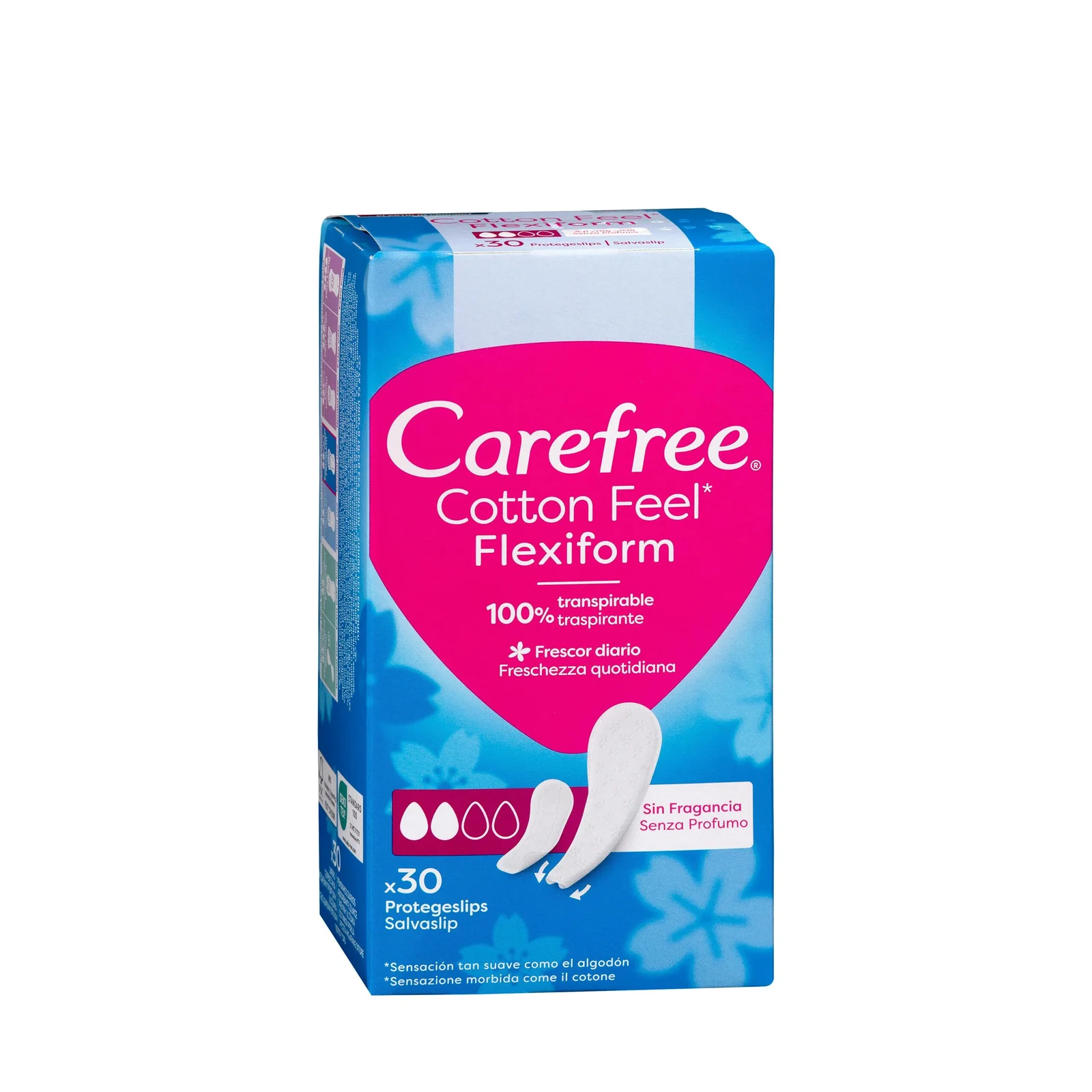 Protegeslip Cotton flexiform Carefree regular + tanga, pensado para tu higiene y cuidado personal de cada día. Fácil de usar y adecuado para la rutina habitual.
