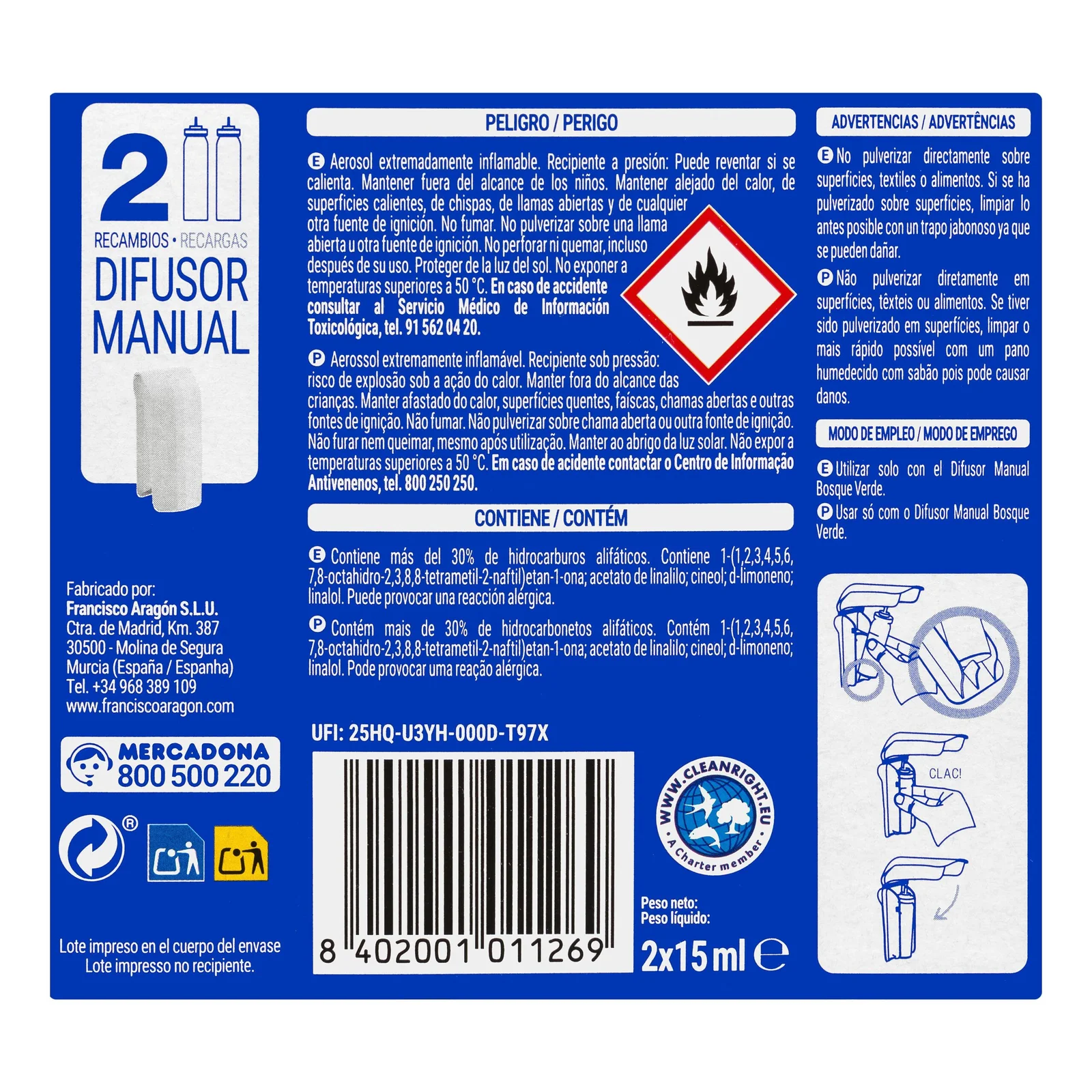 Recambio ambientador mini spray Brisa Azul Bosque Verde