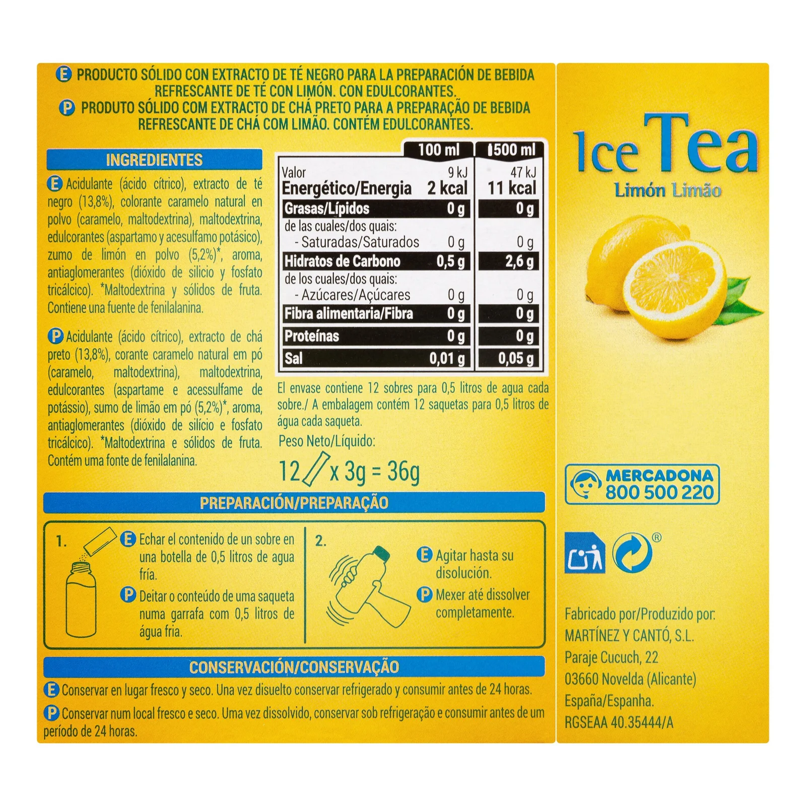 Refresco té sabor limón Hacendado para diluir