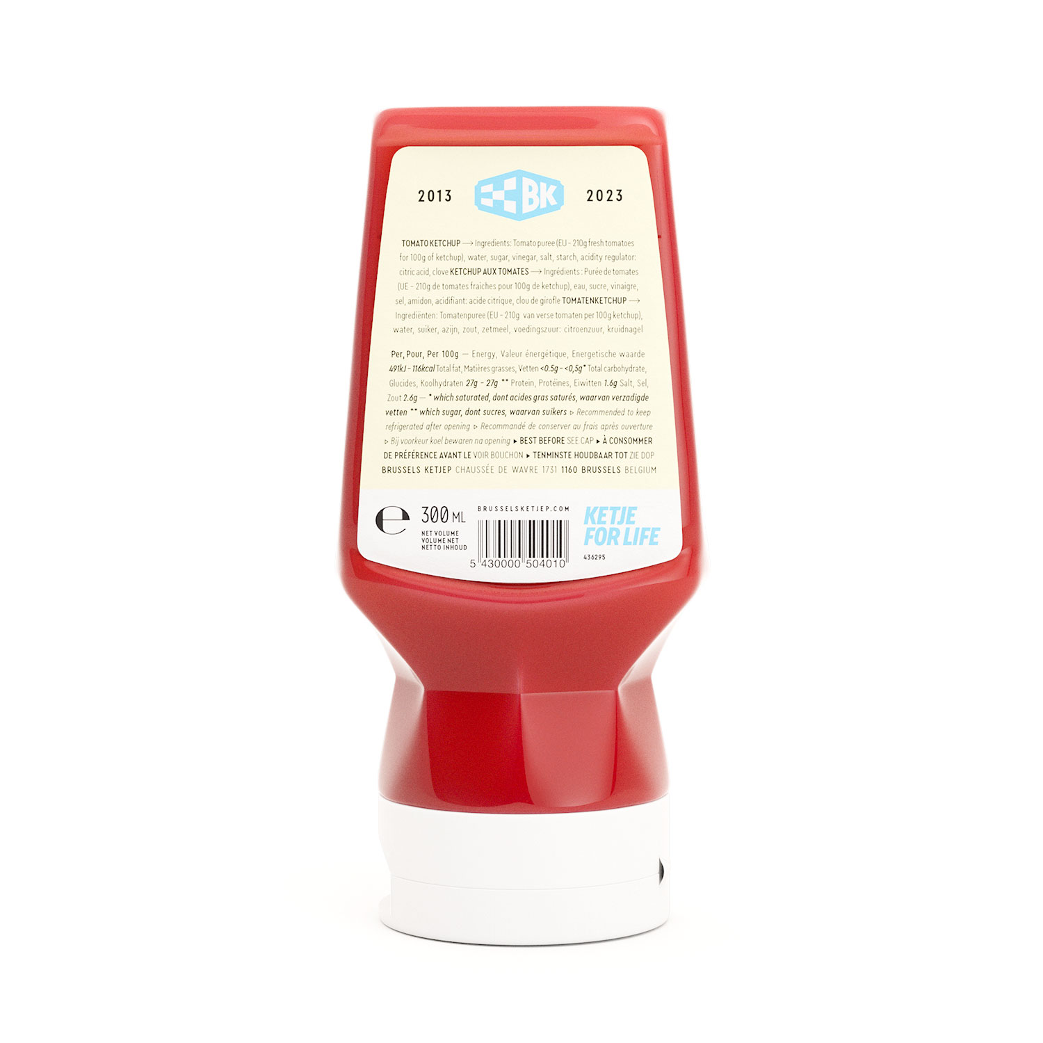 Salsa de ketchup de la casa. Brussels Ketjep respeta la proporción de especias del ketchup tradicional, pero utiliza un 50% más de tomates. Esto hace que la salsa además de más sabor tenga una textura más espesa.
