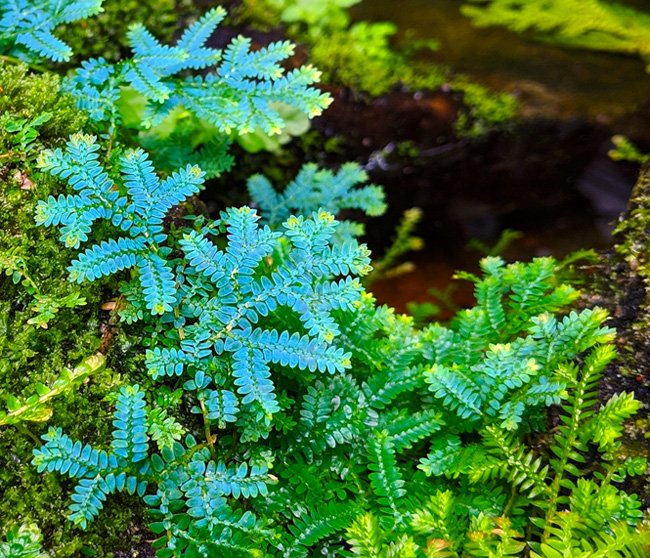 Selaginella uncinata. Uno de los helechos mas cotizados en terrarios tropicales. hojas que van desde el azul al rosa intenso. Fundamental