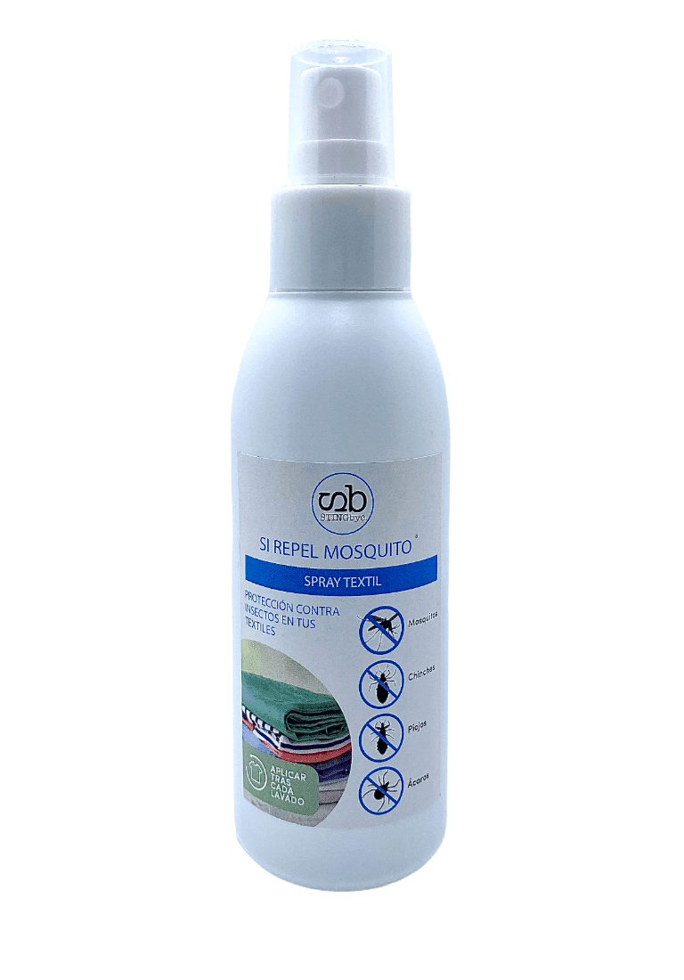 Spray antimosquitos repelente de insectos de solución líquida para pulverizar sobre todo tipo de tejidos.
