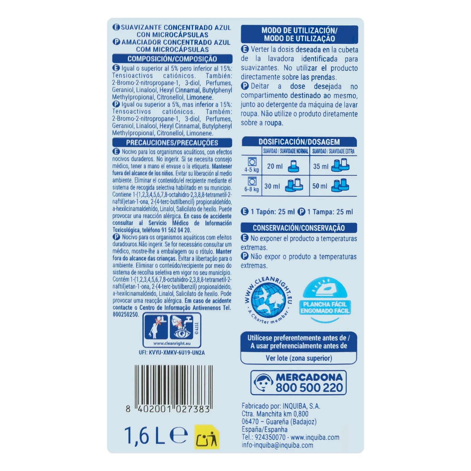 Suavizante ropa Azul Bosque Verde concentrado es un producto de limpieza del hogar seleccionado dentro de la sección Detergente y suavizante ropa de nuestro Mercado Español. Pensado para españoles que viven fuera y quieren seguir usando sus productos de siempre, y para clientes europeos que valoran la calidad y eficacia de la limpieza ‘a la española’.