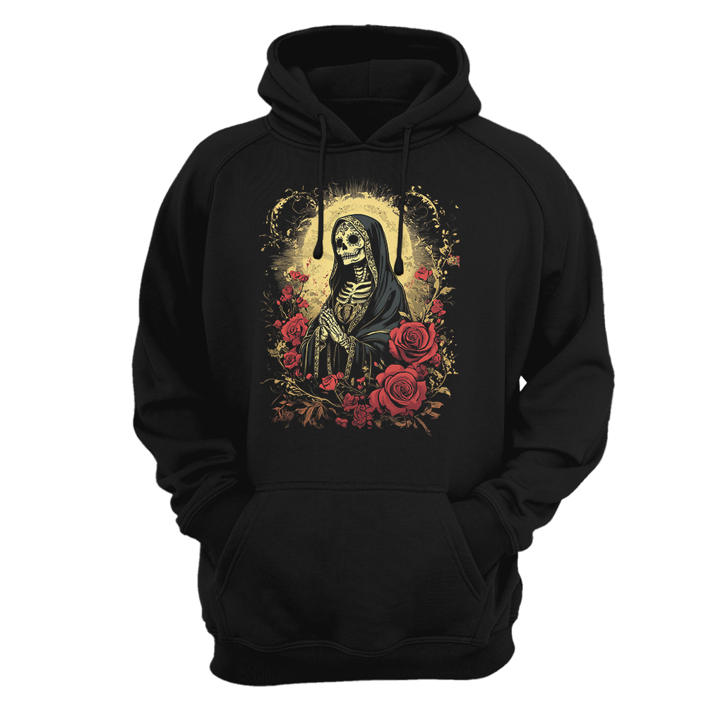 🎁 Perfecta como regalo para amantes de la cultura mexicana, fans del Día de los Muertos, seguidores del arte oscuro, creyentes sin iglesia, diseñadores gráficos, tatuadores, rockeros latinos, coleccionistas de sudaderas únicas, y para todo el que se toma la muerte con estilo.