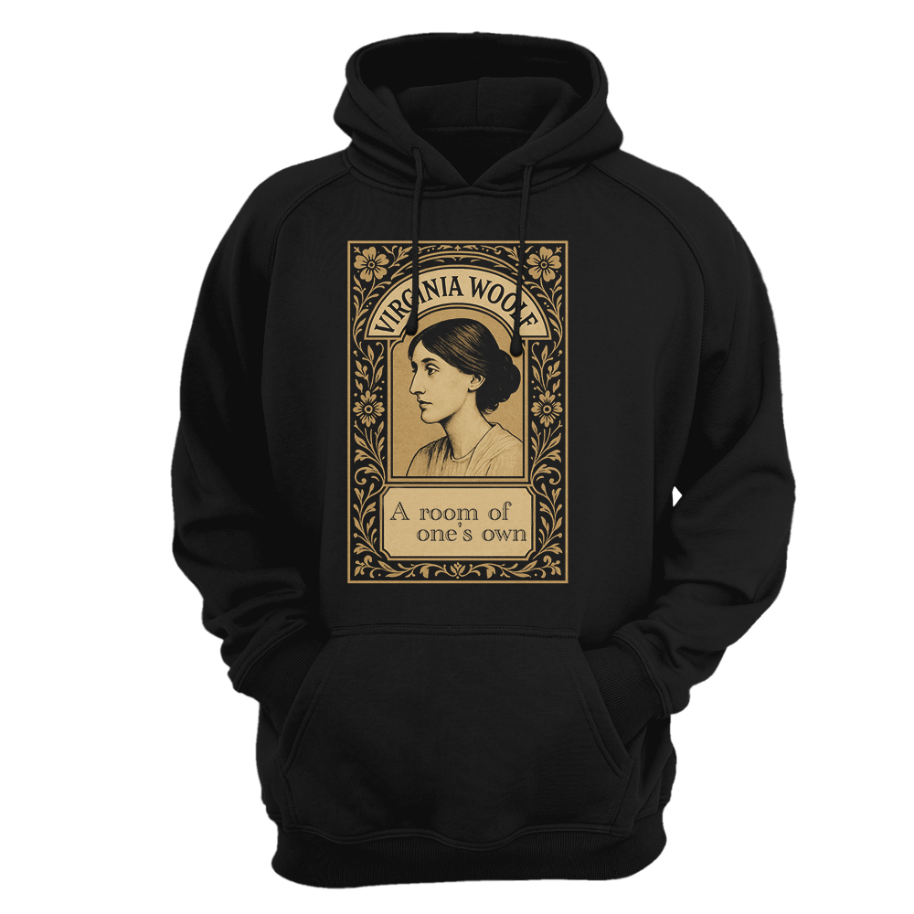 Con un diseño que parece sacado de una editorial del siglo XIX, esta prenda te envuelve con la fuerza de Virginia Woolf y la calidez de quien sabe que escribir también es resistir. El marco de flores doradas no es adorno, es símbolo. Y la frase no es cita, es mantra.