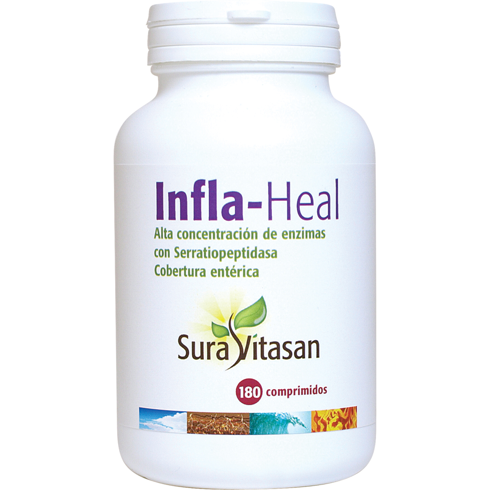 Infla-Heal es un complemento alimenticio a base de una alta concentración de enzimas con serratiopeptidasa, rutina, l-cisteína y zinc. Con cobertura entérica. El Zinc contribuye al mantenimiento de los huesos en condiciones normales, a la síntesis proteínica normal, a la protección de las células frente al daño oxidativo y al del normal funcionamiento del sistema inmunitario.