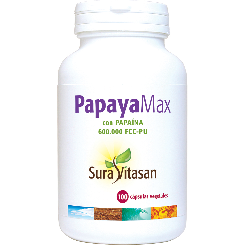 Cada cápsula de PapayaMax contiene 250 mg de fruto de papaya ( Carica papaya) formulada con 6 mg de papaína (600.000 FCC-PU). La papaína es una enzima proteolítica obtenida del látex de la papaya. Frecuentemente la producción pancreática de enzimas proteolíticas se ve reducida con la edad.