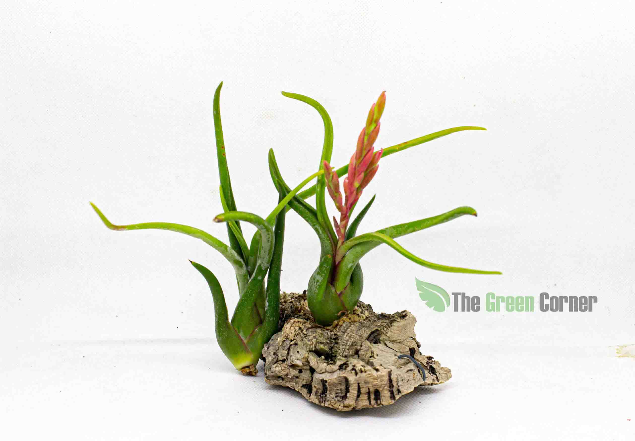 En lo referente a su mantenimiento, es recomendable la pulverización con agua, de dos a tres veces por semana en los meses más calurosos siendo suficiente con un riego por semana en los meses más fríos. Produce unas hojas largas y curvadas de color verde con tonos grisáceos que salen de su base con forma de bulbo, del que emergen múltiples brácteas florales de un color rosa intenso acompañadas de una preciosas pequeñas flores tubulares moradas, tan comunes en las Tillandsias.