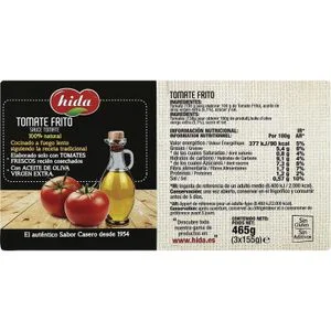 Descubre Tomate Frito Lata Pack de 3 de HIDA, elaborado con la calidad y el sabor que representan la esencia de la gastronomía española. Ideal para quienes residen fuera de España y desean revivir los sabores de casa, o para aquellos que quieren explorar la auténtica cocina española. Cada bocado ofrece una experiencia llena de tradición, calidad y placer culinario. Perfecto para compartir, regalar o disfrutar en cualquier ocasión con el verdadero sabor de España.