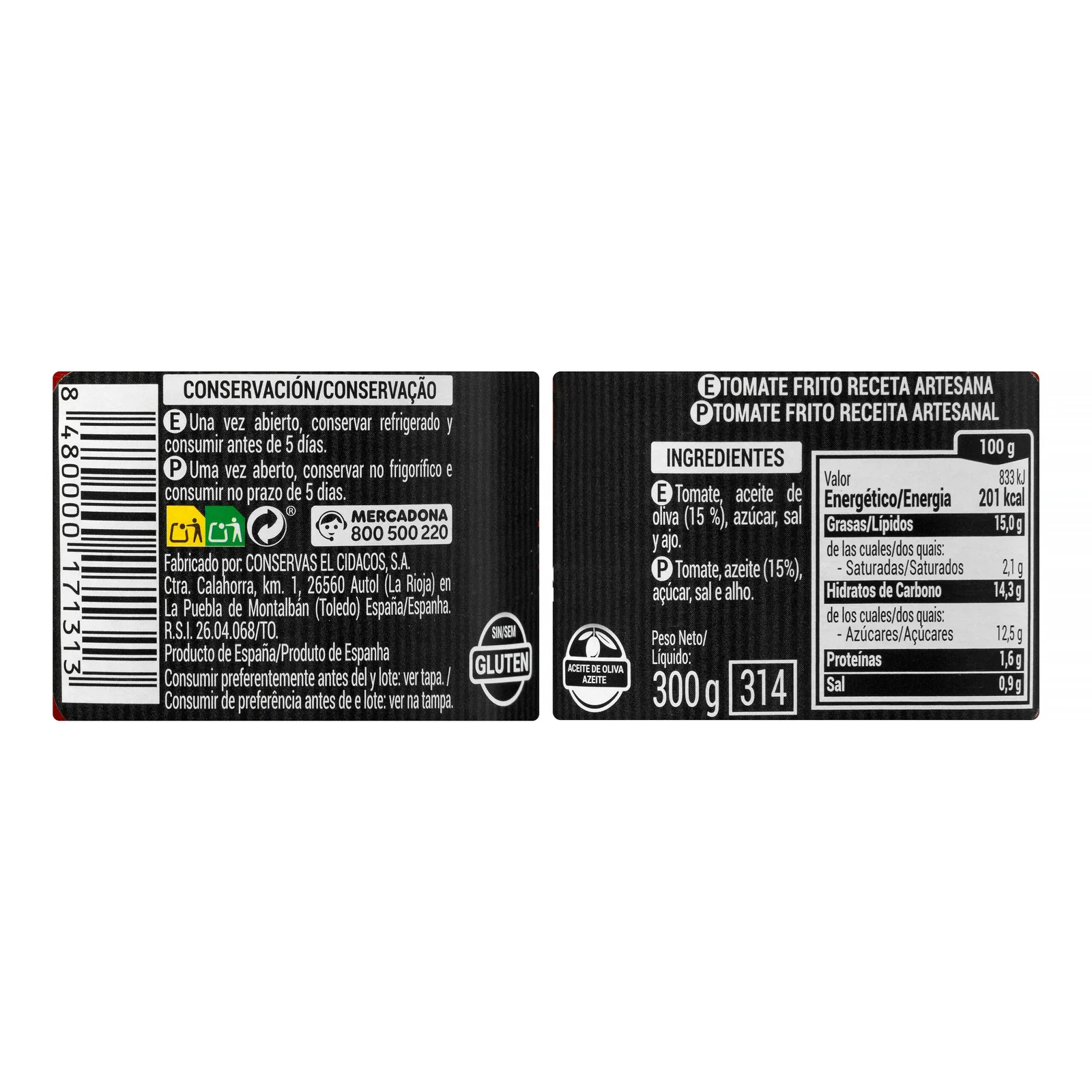 Tomate frito receta artesana Hacendado con auténtico sabor español.