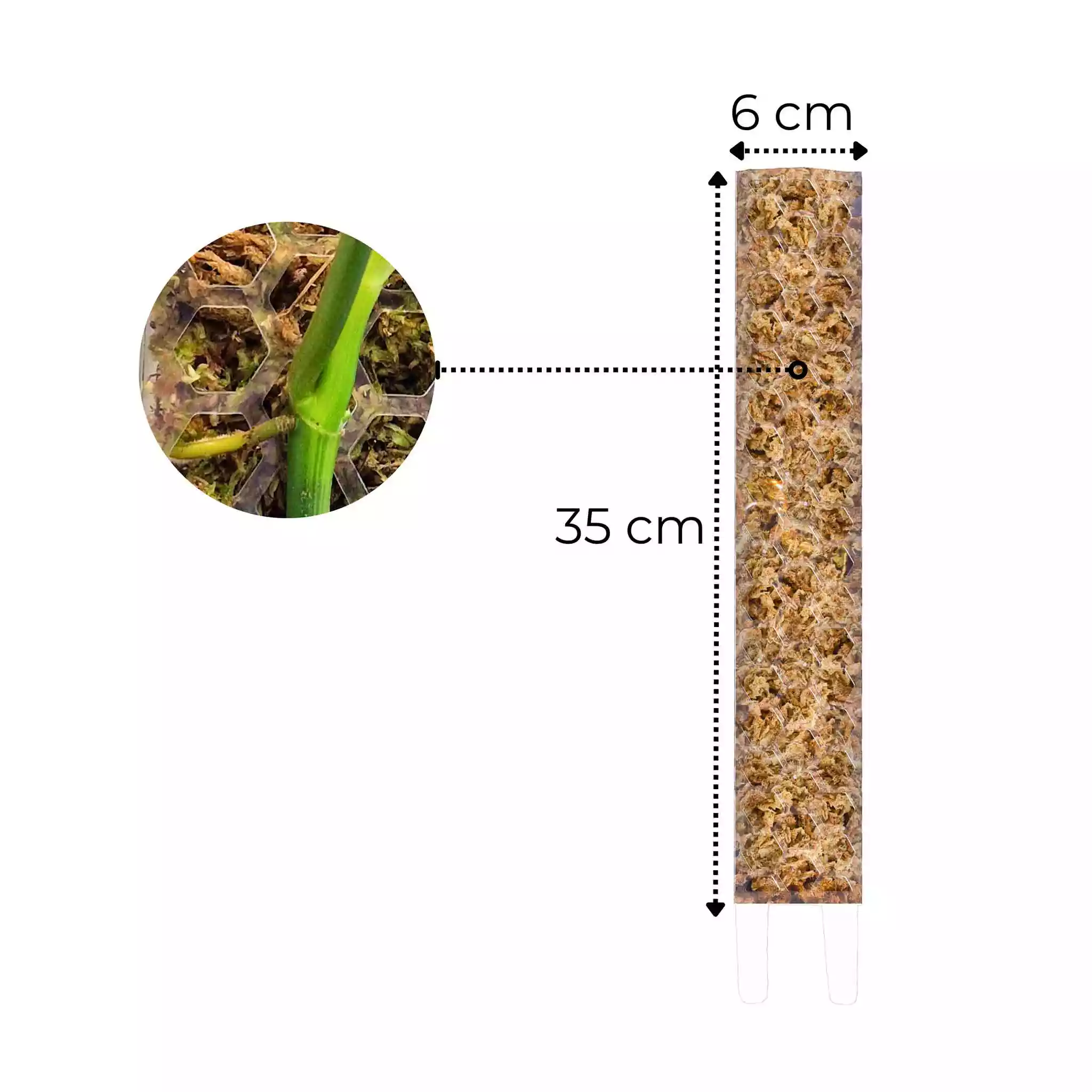 Nuestros portes de musgo cuentan con un sistema de secado lento que ayuda a retener humedad, asegurando que sus plantas tengan resistencia a la humedad a largo plazo. Son postes plegables en forma de D de alta calidad para soportar aroides. Estos postes de musgo tienen recortes en forma de panal/hexágono que permiten que las raíces aérea  pasen y se arraiguen en el musgo o cualquier otro sustrato con el que este lleno el poste.