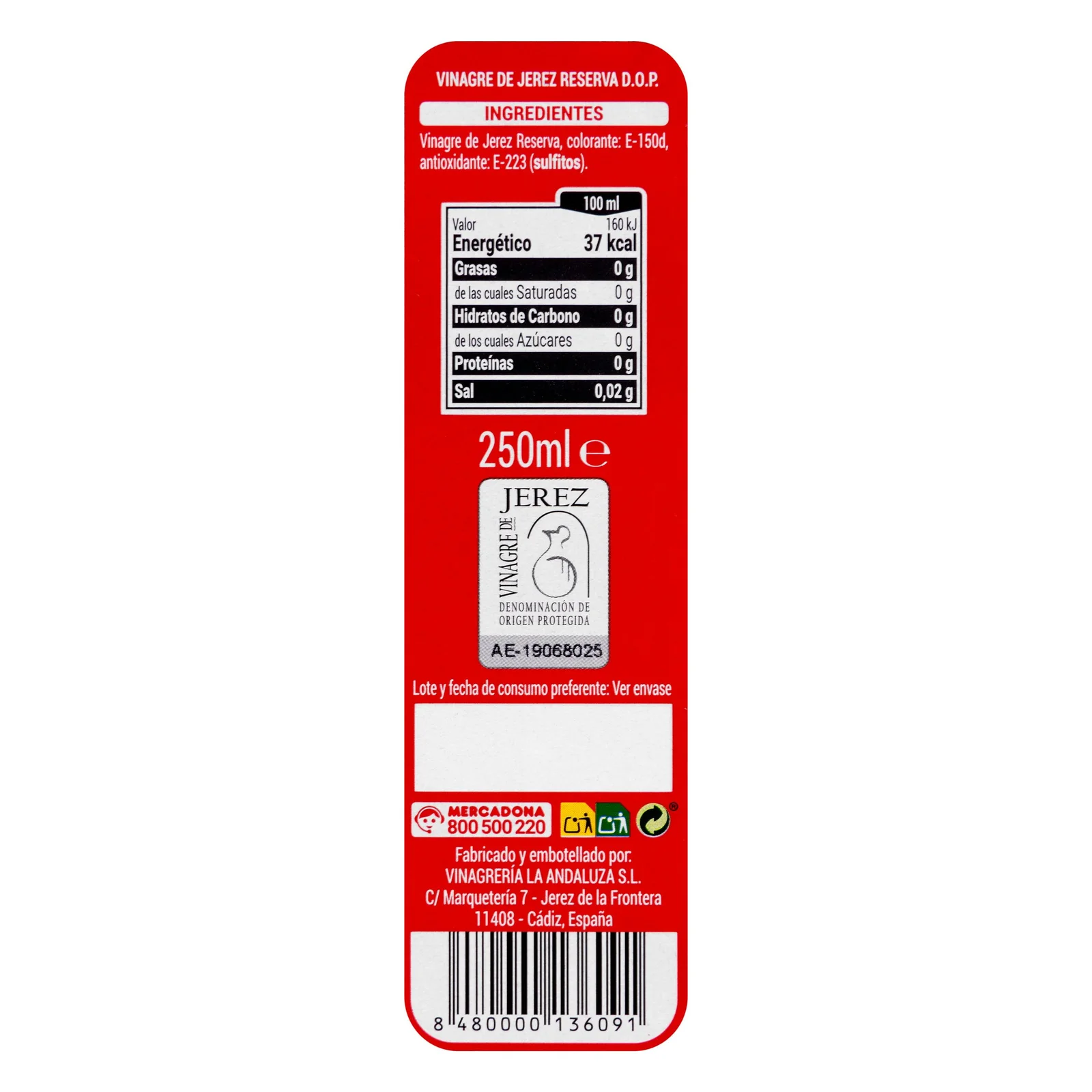 Vinagre de Jerez reserva Hacendado