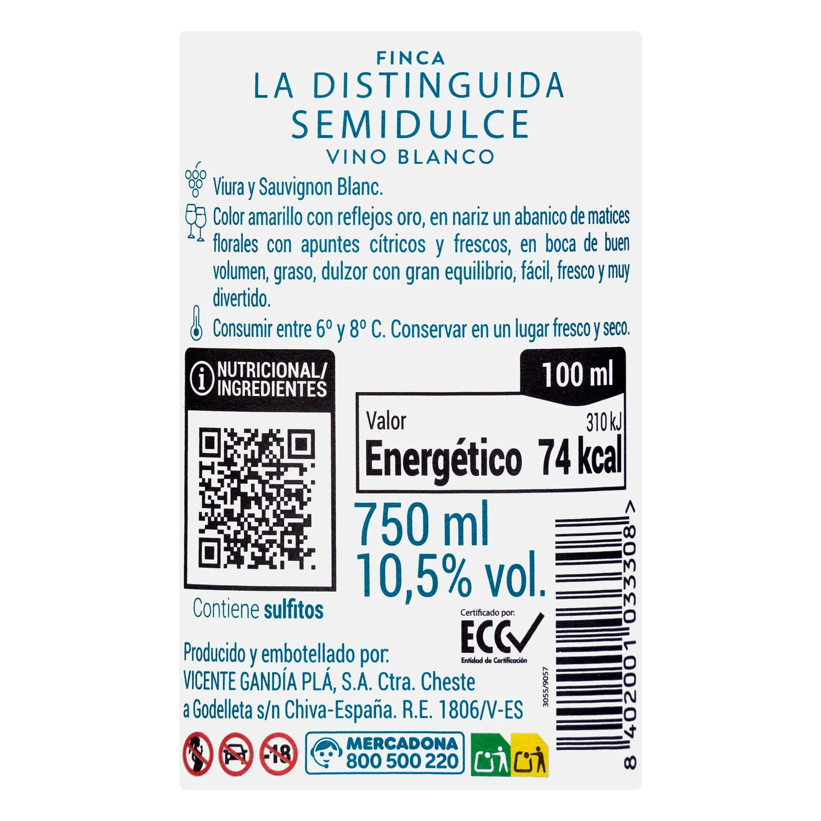 Vino blanco semidulce Finca La Distinguida es una bebida española seleccionada, pensada para españoles que viven fuera y para amantes de la gastronomía española en toda Europa. Forma parte de nuestra categoría de Bodega y Licores > Vinos > Vino blanco, ofreciendo tradición, calidad y sabor auténtico.