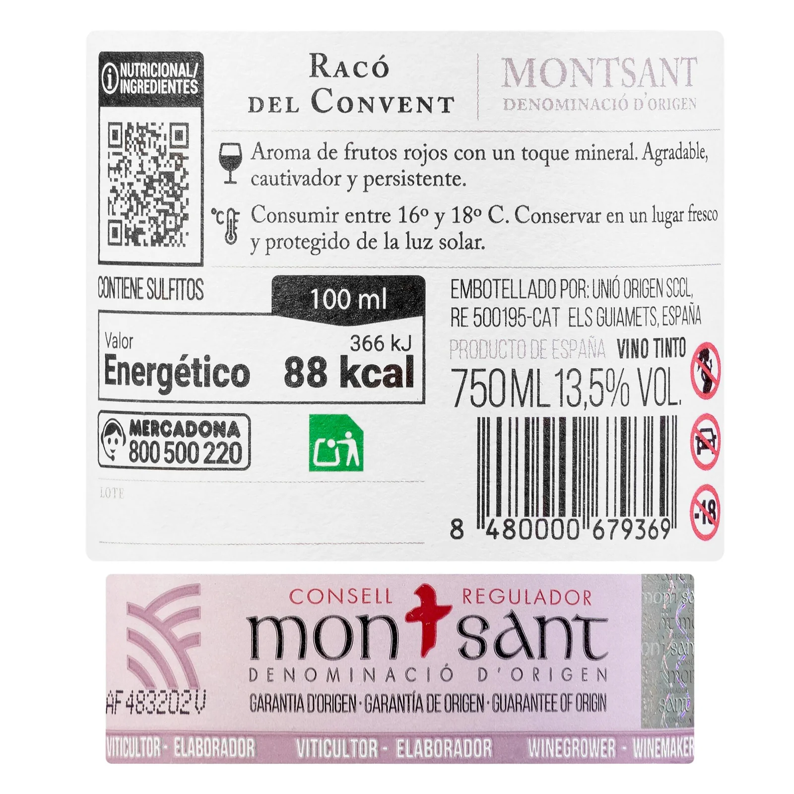 Vino tinto D.O Montsant Racó del Convent – producto español auténtico, ideal para quienes buscan el sabor de España en Europa.