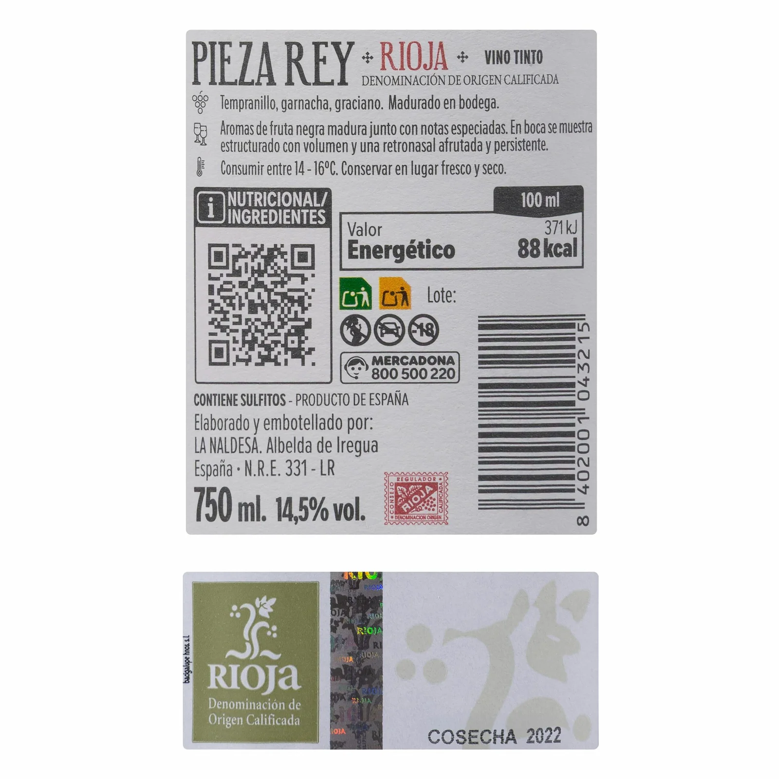 Vino tinto D.O Rioja Pieza Rey – producto español auténtico, ideal para quienes buscan el sabor de España en Europa.